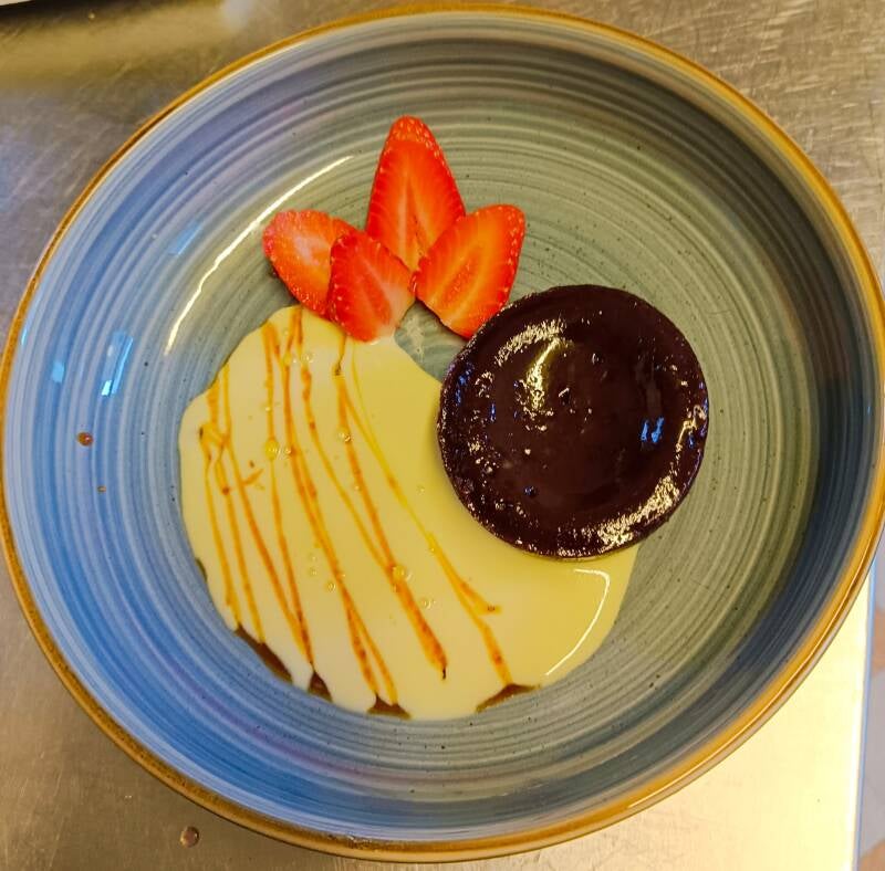 Terminez votre repas avec notre délicieuse dessert, Moelleux aux chocolat gâteaux aux fraises,crème brûlée , glaces ,baba au Rhum etc.....